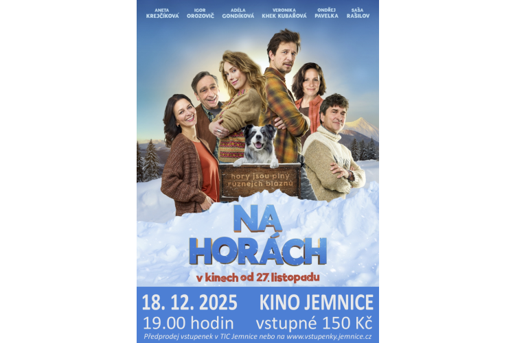 18. 12. 2025 19:00 Na horách – filmové představení pro dospělé kino Jemnice předprodej vstupenek na www.vstupenky.jemnice.cz nebo v TIC Jemnice pořadatel město Jemnice